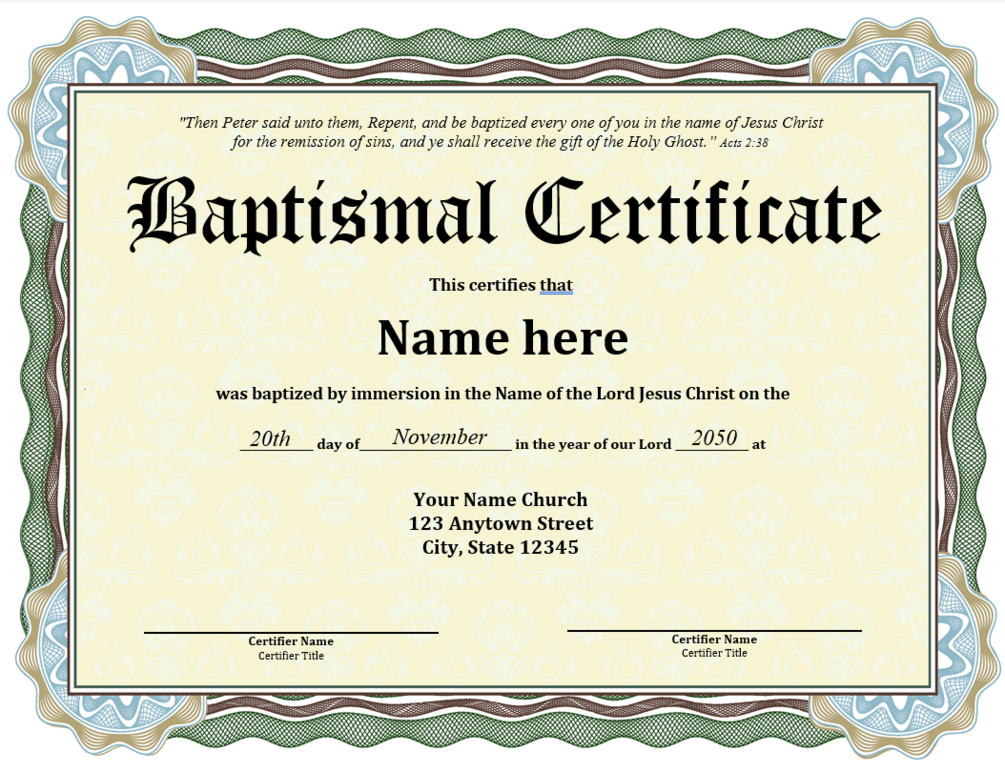 Downloadable Baptism Certificate